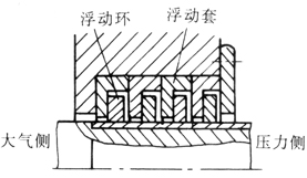 浮動(dòng)環(huán)可以在軸上徑向浮動(dòng)。軸向密封靠浮動(dòng)環(huán)與軸的狹窄徑向間隙產(chǎn)生節(jié)流;徑向密封靠浮動(dòng)環(huán)與軸上浮動(dòng)套貼合(依靠壓力或彈簧力)而達(dá)到