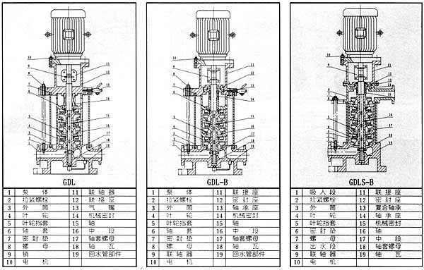 GDL型立式多級管道泵是根據本公司ISG型立式離心泵及DL型立式多級離心泵的優點而設計的。GDL型泵在結構上采用了立式、分段形式,泵的吸入口與排出口設計在下方成一字形,并采用了佳水力模型。泵的軸向力采用水力平衡方法解決,殘余軸向力由一個球軸承承受,因而運轉平穩、低噪音、占地面積小、裝修方便。外筒體用不銹鋼制造,外型美觀,特別適合于高層建筑多臺泵并聯使用,以減少單泵機組配帶功率,簡化電控設備。適用于高低層建筑的住宅、醫院、旅館、百貨大樓、辦公大樓等的消防、生活供水以及空調機組循環、冷卻水輸送等。