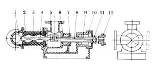 I-1B系列濃漿泵是單螺桿式容積回轉泵,該泵利用偏心單螺旋的螺桿在雙螺旋襯套內的轉動,使濃漿液沿螺旋槽由吸入口推移至排出口,實現泵的輸送功能。