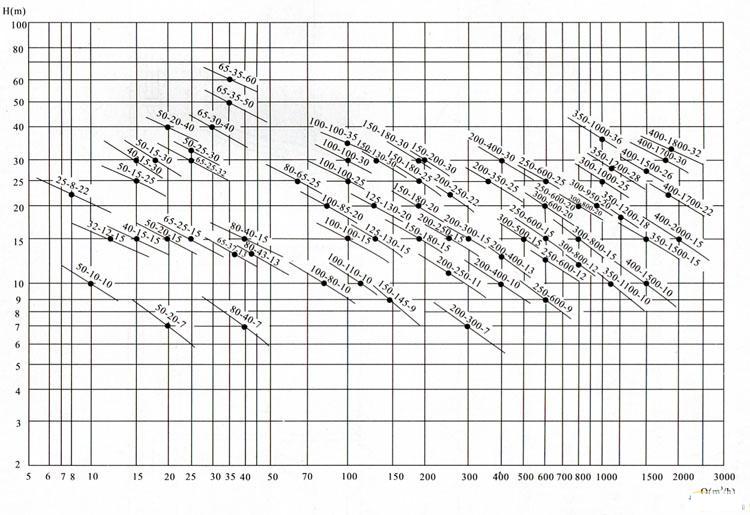 | 型號 | 口徑 mm | 流量 m3/h | 揚程 m | 功率 KW | 轉速 r/min | 效率 % |