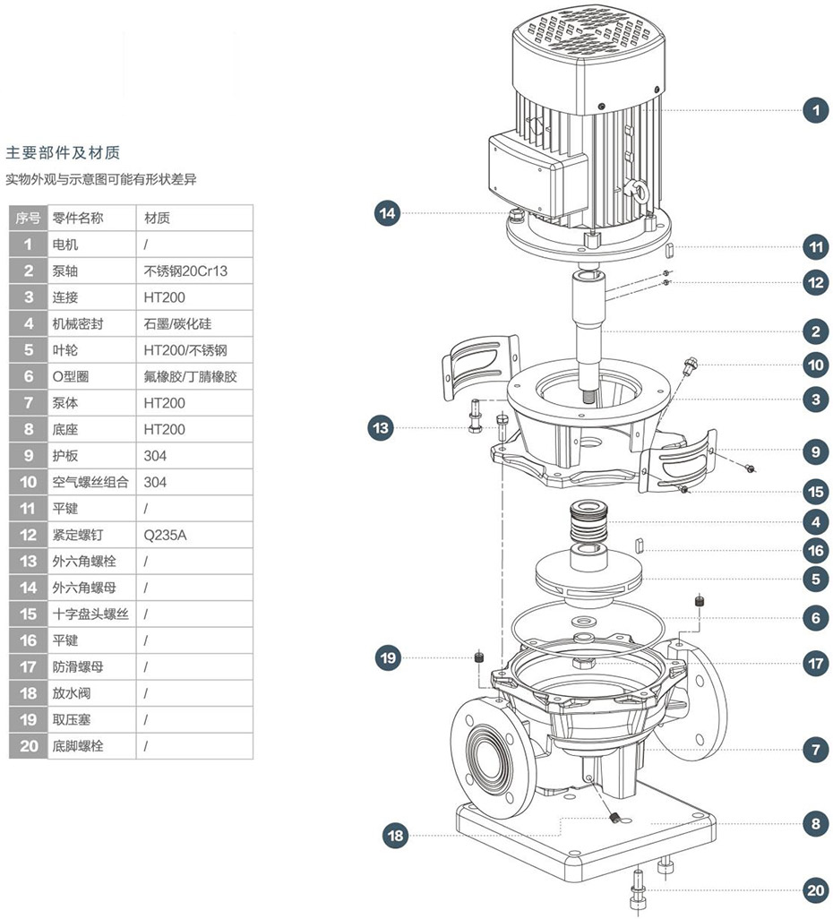 注:如使用介質(zhì)為帶有細(xì)小顆粒,請在訂貨時說明,以便廠家采用耐磨式機(jī)械密封。